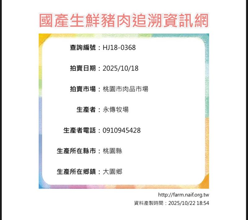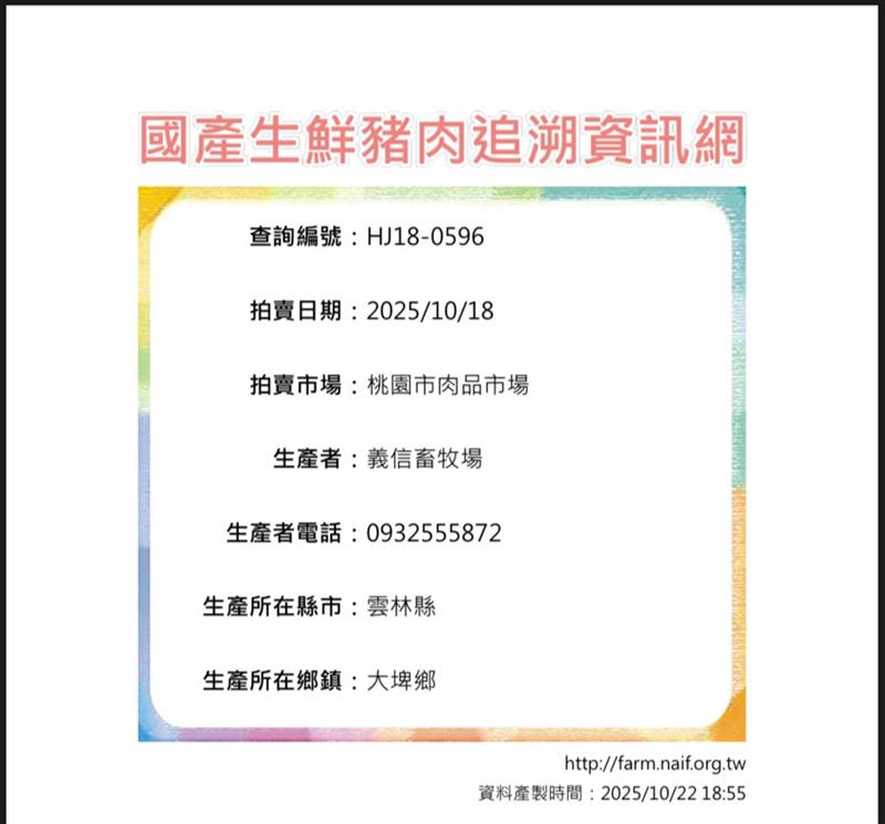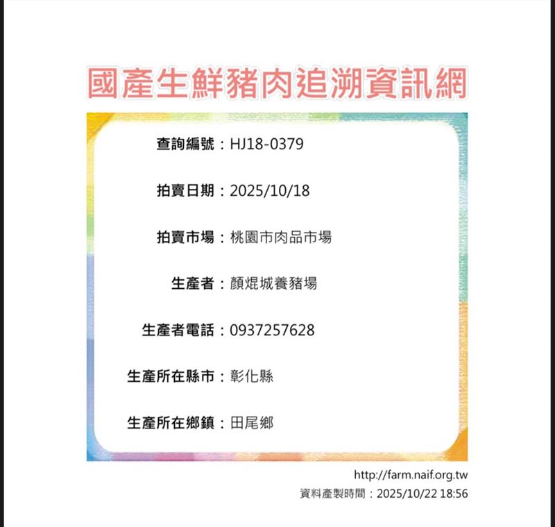 上述批次均可於國產生鮮豬肉追溯資訊網查詢: